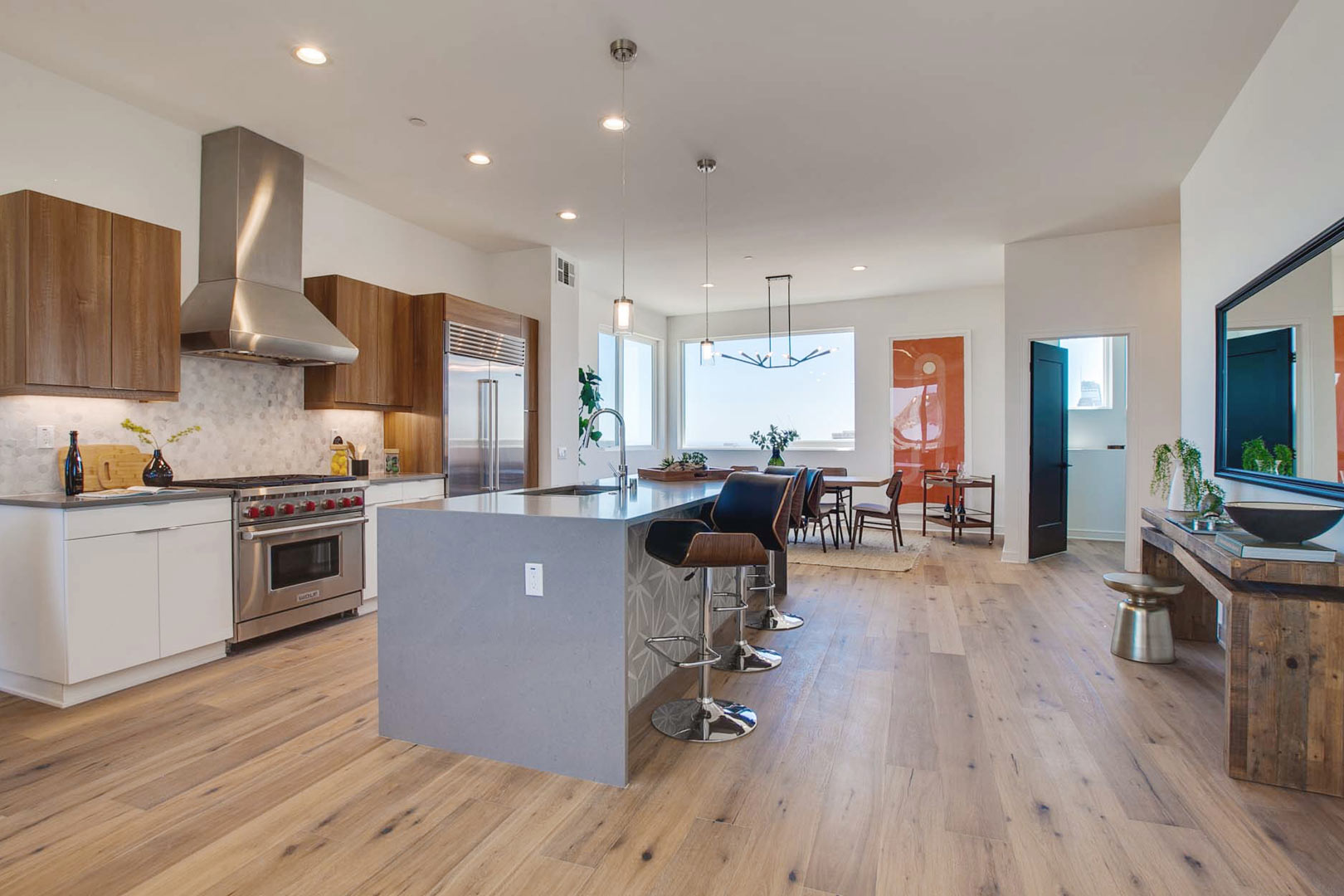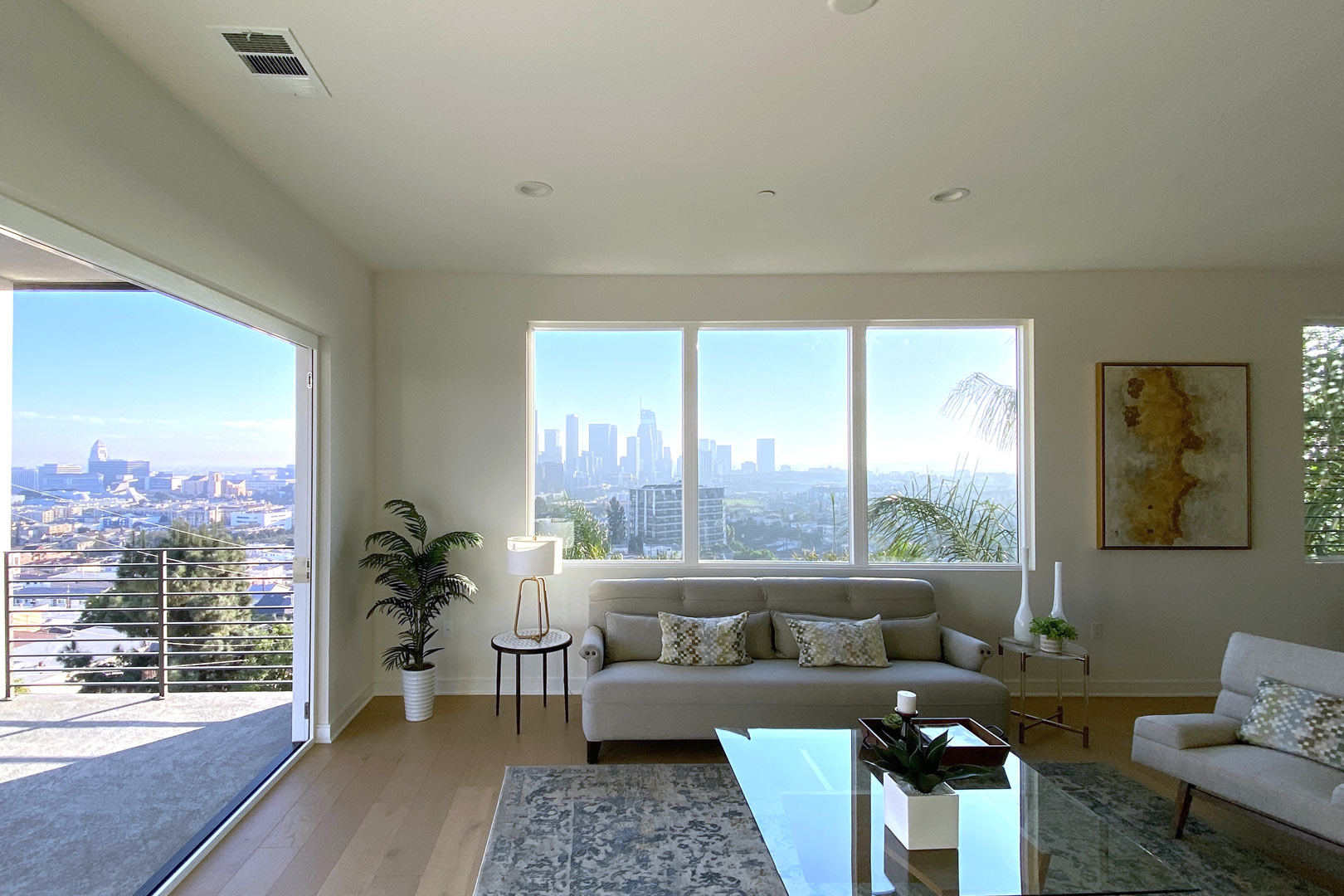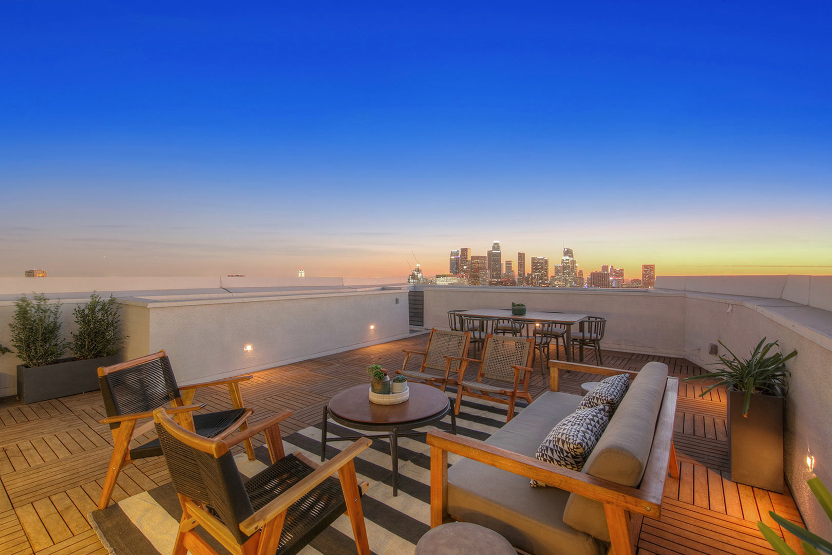 Private roof decks maximize view of Dodger Stadium and downtown LA. views of downtown LA