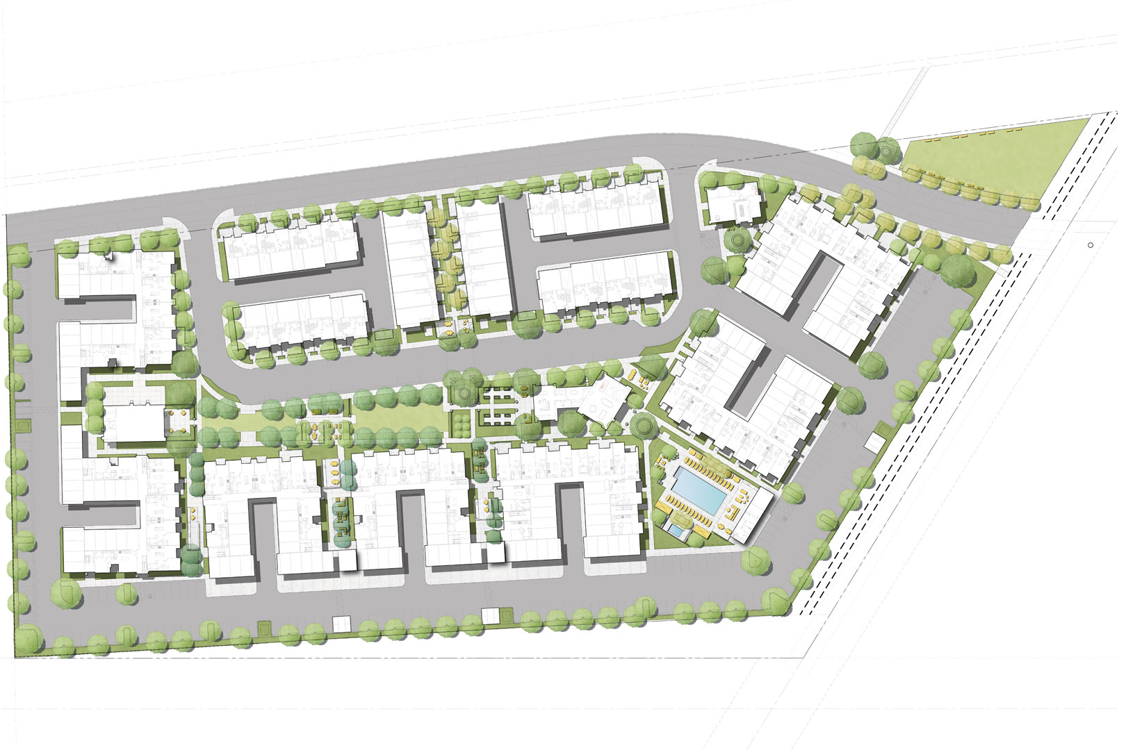 Montclair Station is a mult-family new construction project that consists of a combination of three and four-story tuck under buildings and three story townhomes. The project has a total of 302 units, a mix of studio, one, two, and three bedroom apartments across a total of four different residential building types. Four different leasing/amenity buildings provide community spaces, a business center, fitness center, pet spa, and mail/package center. The site provides 88,952 SF of open space, with a pool area, a dog park, community garden, barbeque area, outdoor fitness area, and many gathering and flex spaces throughout.