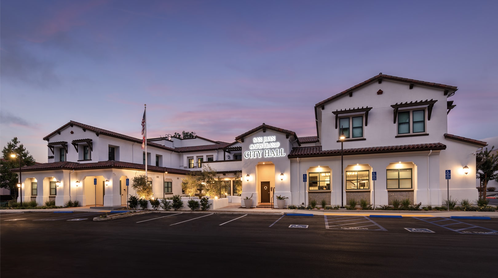 RESI Architecture designed the new San Juan Capistrano City Hall to reflect the city's historic character while meeting the functional needs of a modern civic center. Drawing from the region’s Spanish Colonial heritage, the design incorporates stucco walls, clay tile roofs, and shaded arcades, blending traditional forms with contemporary detailing.